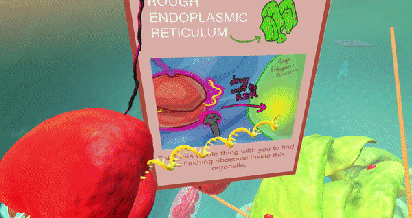 Learning through exploration and wonder is the goal of this virtual reality experience. Developed in unity for the HTC Vive. The target audience is middle-school aged children who want to learn more about basic cellular anatomy and protein creation.